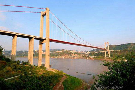 江津中渡長江大橋,全長1738米,主橋橋型為懸索橋,...